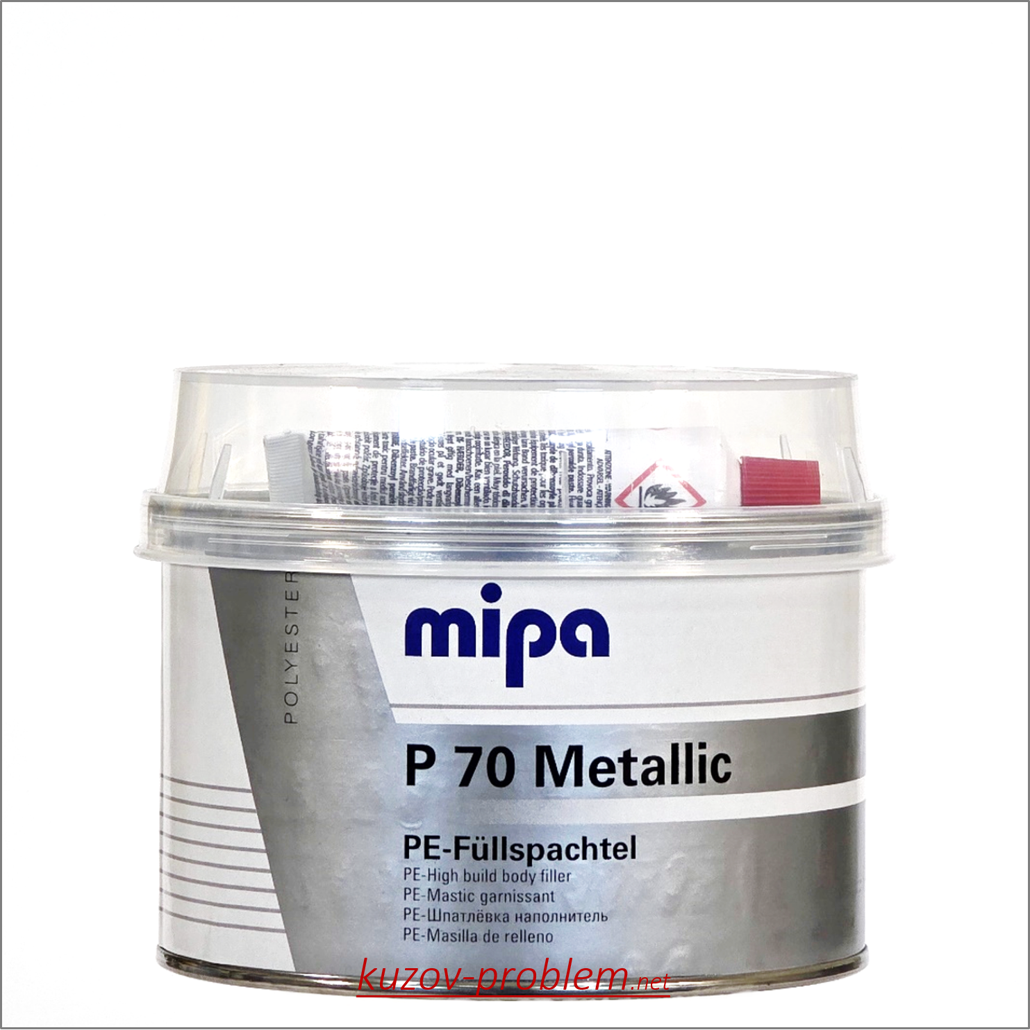 Шпатлевка металлик Р70 Metallic PE-Fullspachtel с алюминием 1кг с отвердителем Мипа